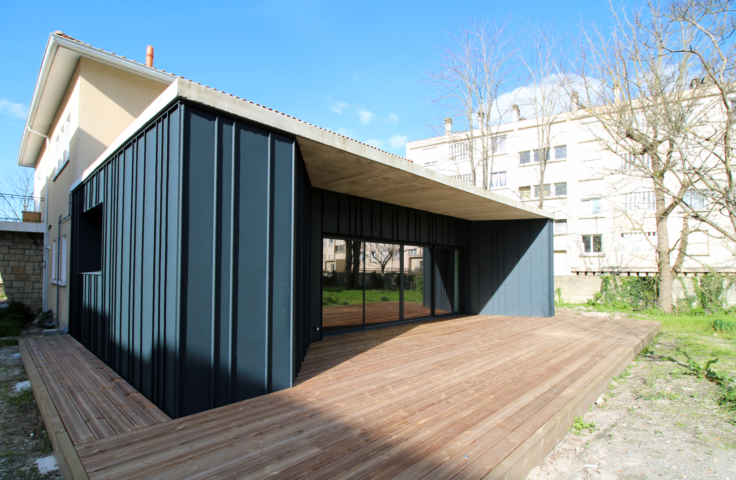 Le parti pris architectural est résolument contemporain. Il s’inscrit dans une rupture, plutôt que dans un mimétisme de la maison existante.