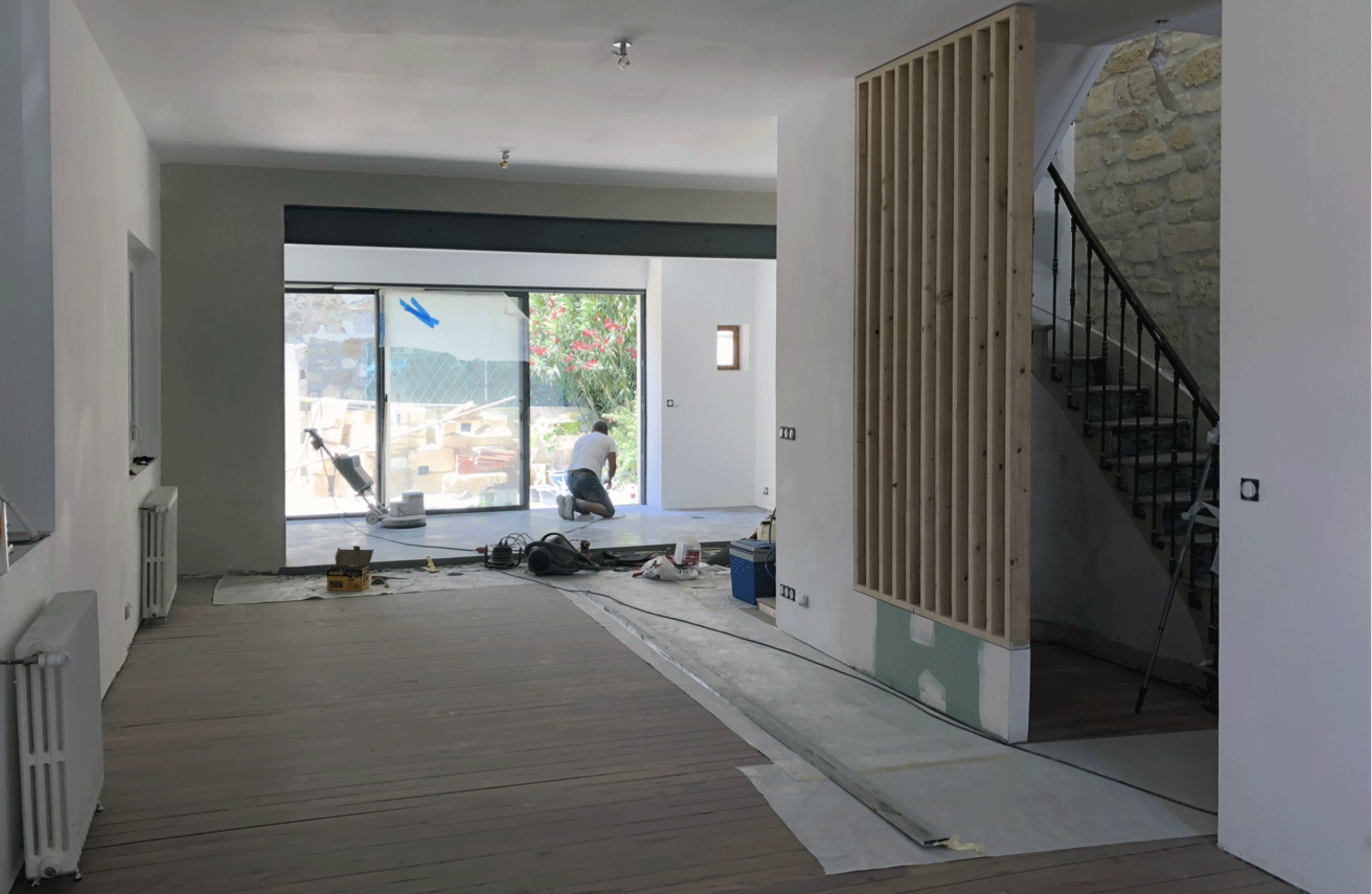 Le projet envisagé est une rénovation complète de l’habitation, impliquant le décloisonnement du RdC, y compris l’ouverture de la façade arrière pour une ouverture sur le jardin, la reprise intégrale de l’électricité et de la plomberie, la création de mezzanine dans les chambres des enfants, le re-cloisonnement des espaces selon le projet architectural.